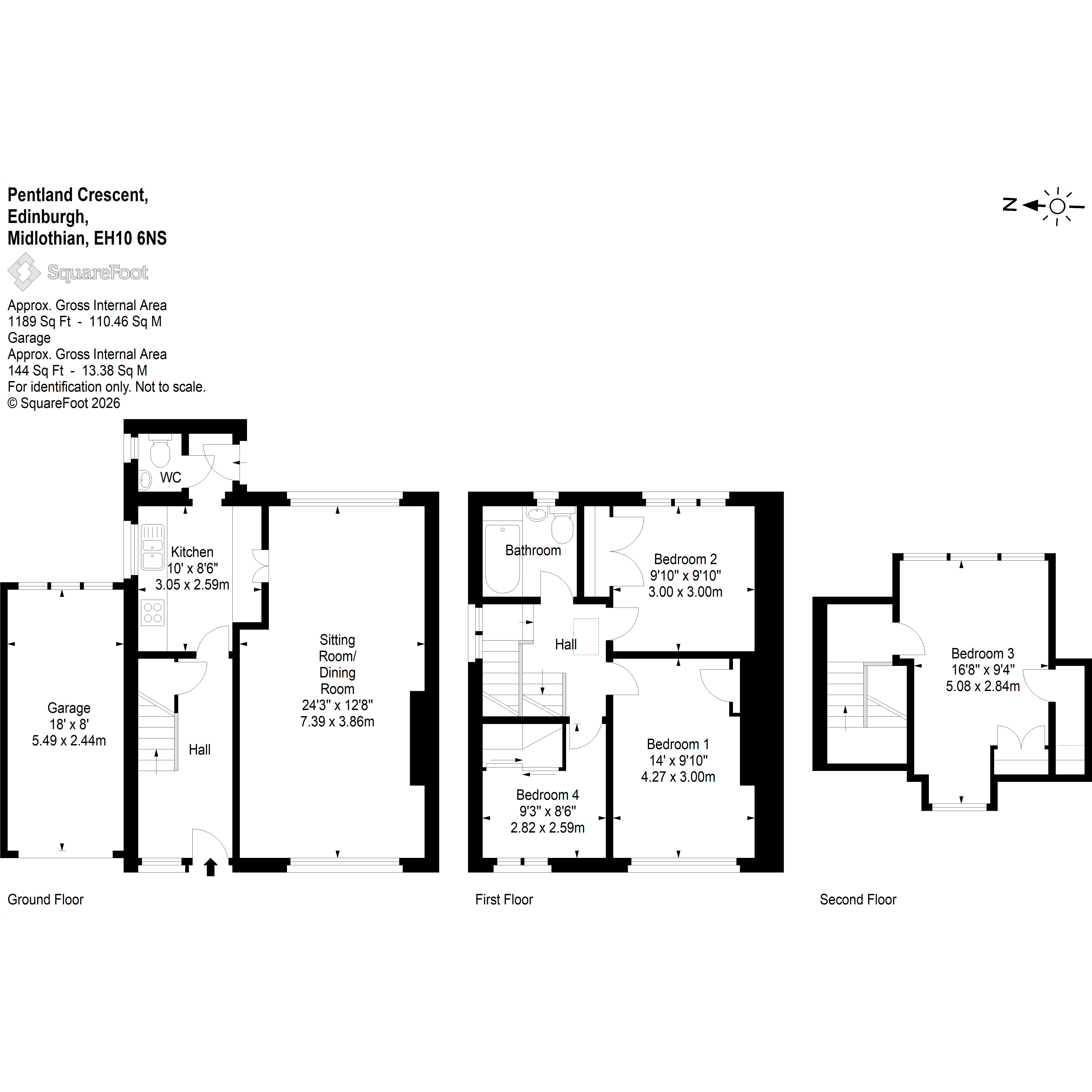 Reception hall with storage. Generously proportioned living/dining room with feature fire. Good sized kitchen. Outer hallway with WC & access to rear garden. Upper landing.Two double bedrooms with storage. Single bedroom/study with storage. Bathroom with shower. Stairs to attic conversion. Further double bedroom with dual aspect & storage. Excellent open outlook. Gas central heating. Double glazing. Private garden to front. Driveway leading to garage. Split levelled rear garden.Views to Pentlands from top of garden.Access to garage from rear. Pathway to side. Unrestricted on street parking.