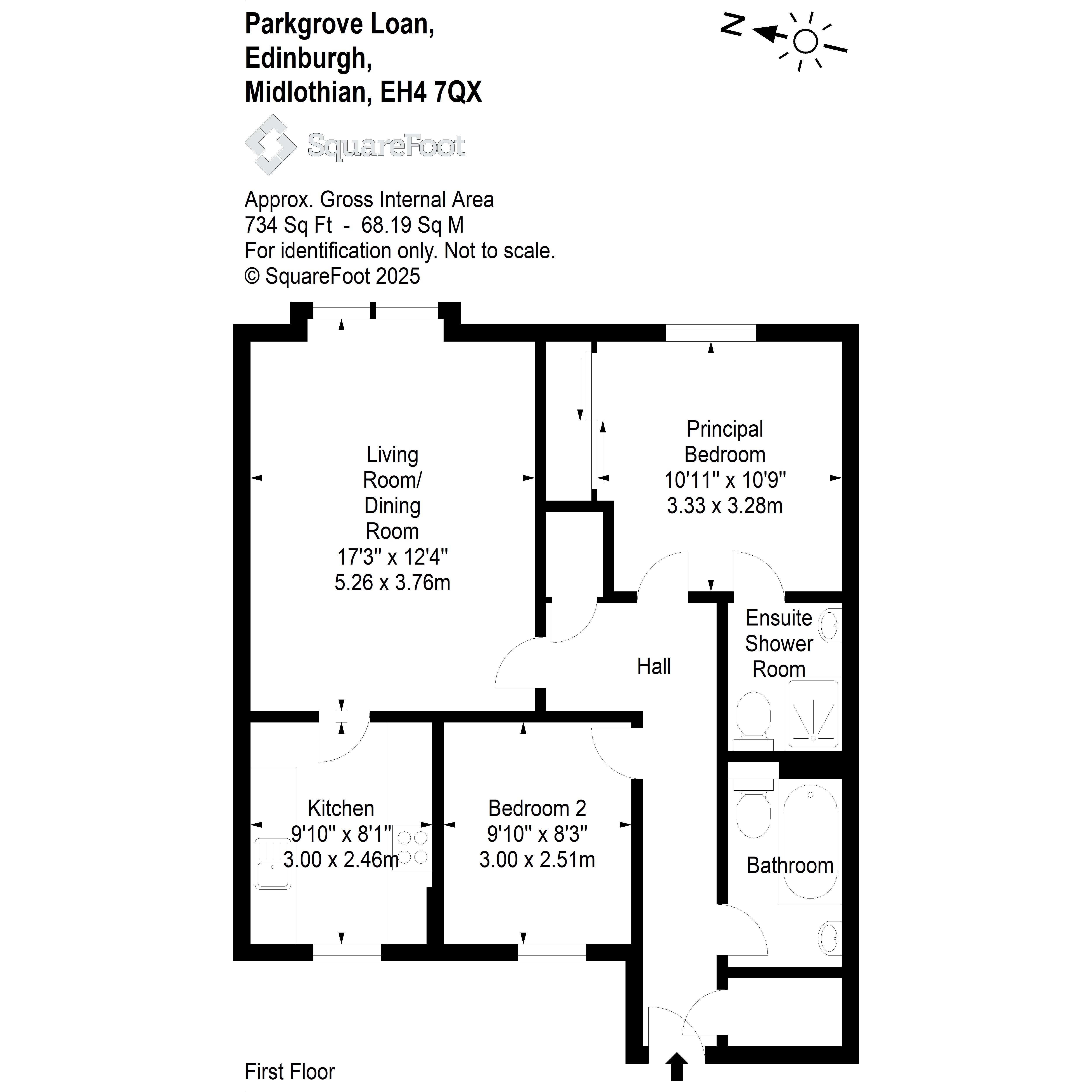 A first floor flat, part of a modern development, in the popular Drum Brae district of the city, ideally positioned for access to a wide range of local amenities and a short journey to the north-west of Edinburgh City Centre. The property would make an ideal purchase for a first-time buyer/young couple and is an ideal commuter base with its close proximity to the Edinburgh City Bypass, the motorway network and also the City Centre itself. The accommodation comprises: – Shared secure entry. Reception hall with excellent storage. Good sized living room with space for table & chairs. Fitted kitchen with appliances. Master bedroom with built-in mirrored wardrobes & ensuite shower room. Further double bedroom.Bathroom with shower. Gas central heating. Double glazing. Well maintained communal gardens. Allocated parking space at rear. Bike storeUnrestricted on street parking.