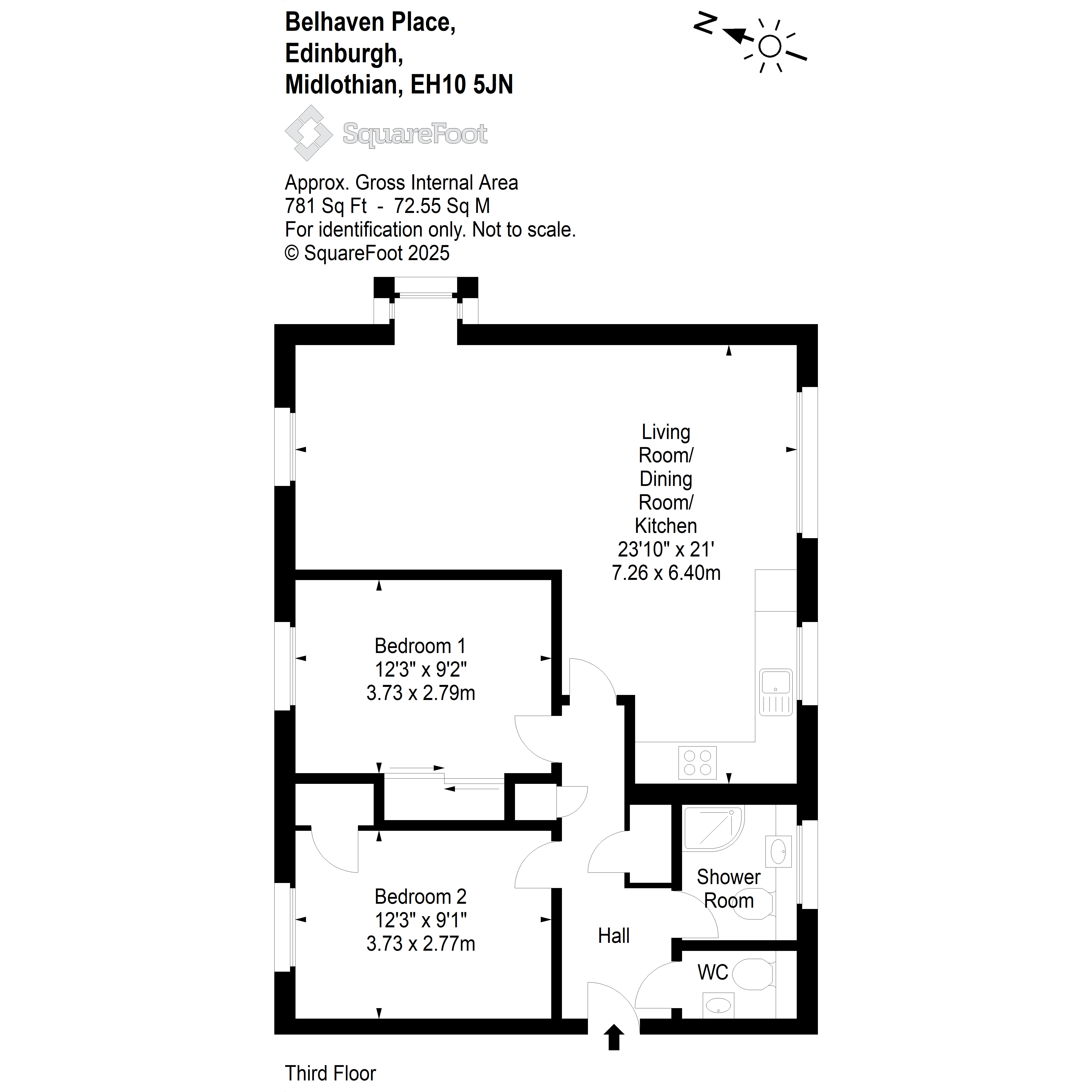 A well-presented top floor flat, part of an established modern development in the prestigious Morningside district of the City, within walking distance of an excellent range of local amenities and a short journey to the south of the City Centre.  The property would be suitable for a range of buyers and is in a great catchment area for schools.  The move-in accommodation comprises: – Shared secured entry. Stairs to upper level. Reception hall with storage. Access to attic storage space via Ramsey ladder. Cloakroom/WC. Fabulous open-plan living room/dining room/kitchen with appliances. Excellent natural light with open outlook to front, side & rear. Two good-sized double bedrooms both with fitted storage. Shower room. Gas central heating. Double glazing. Well-maintained communal grounds. Residents parking with allocated parking space.
