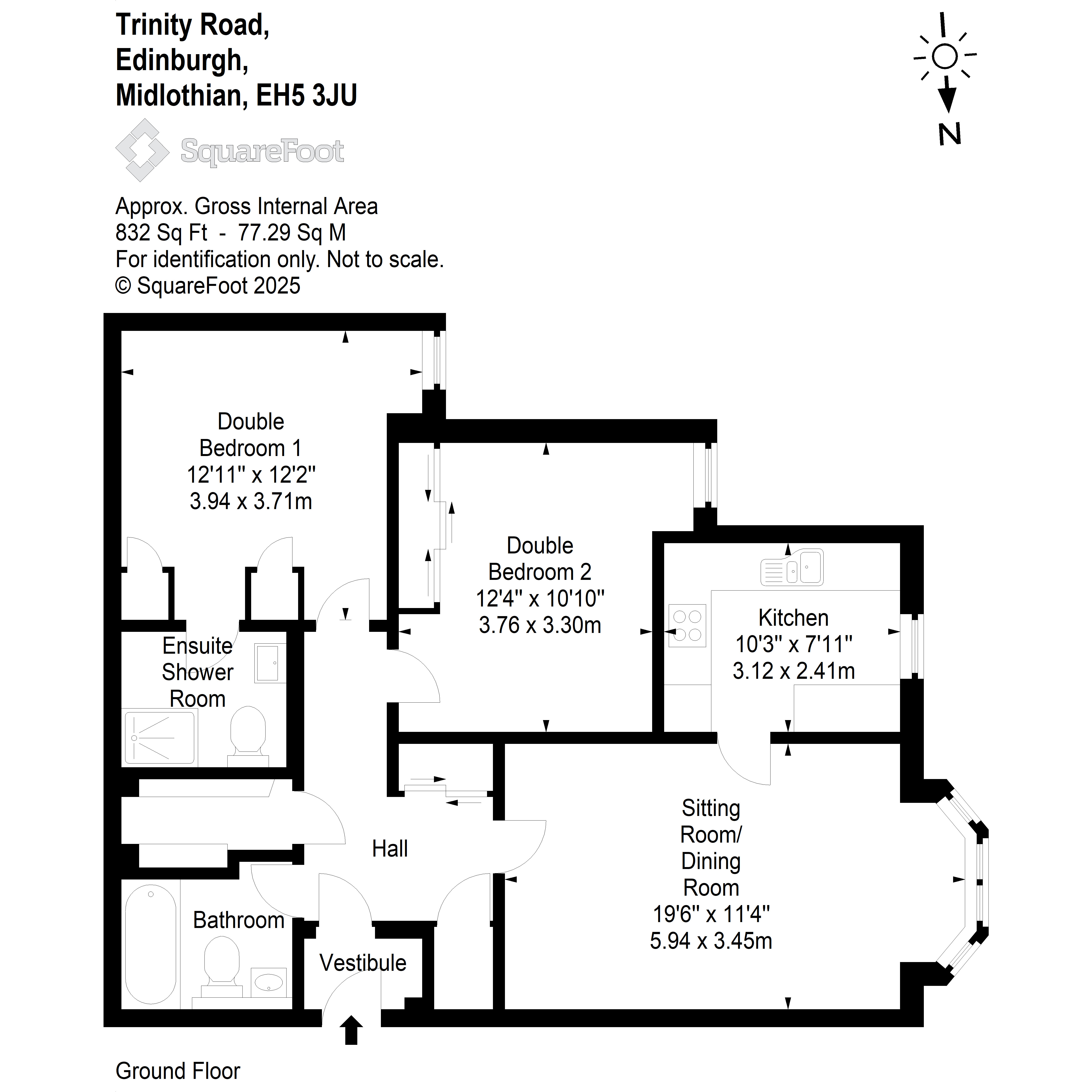 A well-presented ground floor flat situated in the sought-after Trinty district of the city, ideally positioned for access to Edinburgh City Centre and also an excellent range of local amenities.  The property would make an ideal purchase for a professional person or couple or somebody downsizing and looking to stay in the area and  the accommodation comprises: – Shared secure entry. Reception hall with excellent storage. Good-sized bay window living room/dining room. Modern fitted kitchen with appliances. Master bedroom with fitted wardrobes & en-suite shower room. Further double bedroom with fitted wardrobes. Contemporary fitted bathroom with shower. Gas central heating. Double glazing. Well-maintained communal grounds. Resident’s parking. Unrestricted on street parking.